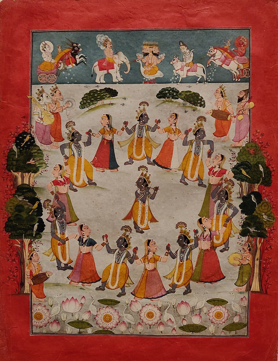 Krishna dances in the Raslila with the Gopis, Kronos collection, Metropolitan Museum of Art. c. 1750, India, Punjab Hills, kingdom of Basohli.